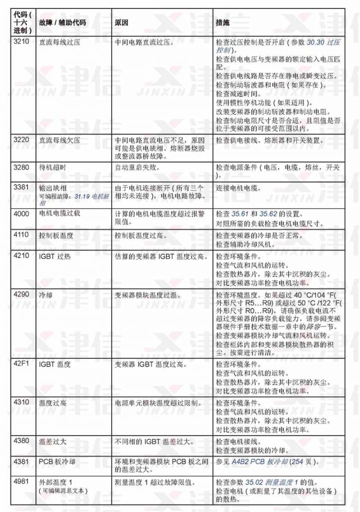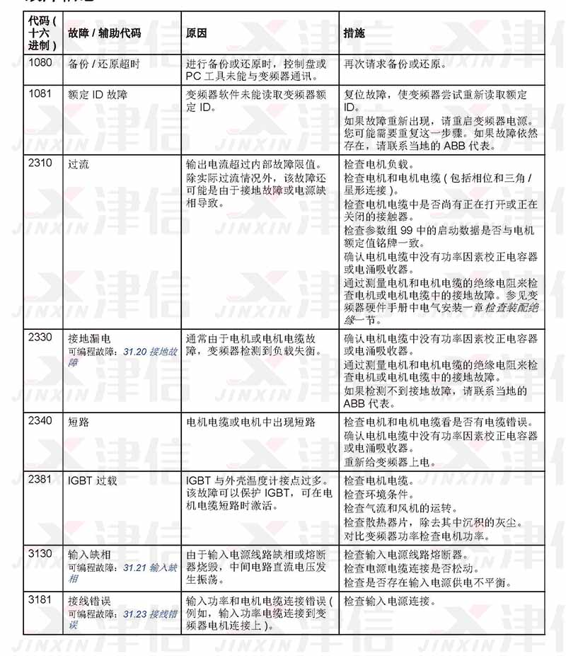 ABB ACS530在使用過程中遇到故障,可以通過以下故障代碼來對故障進(jìn)行分析,并采取相應(yīng)維修措施進(jìn)行修復(fù)。