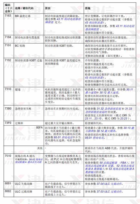 6、ABB ACS580變頻器故障代碼7183,7184,7191,7192,7310,73B0,73F0,7510,8001,8002