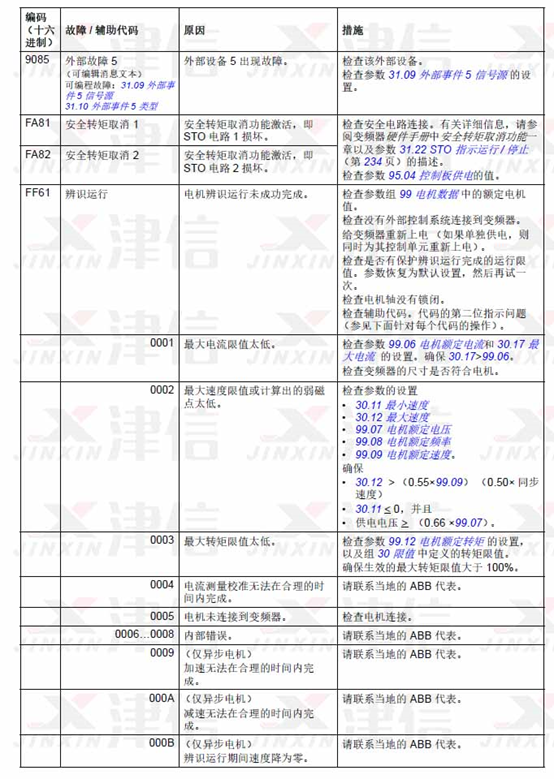 8、ABB ACS580變頻器故障代碼9085,FA81,FA82,FA83,FF61,FF63,FF81,FF8E
