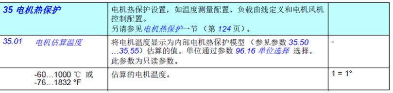 有關全部35組電機過溫保護監控參數請參照ACS580固件手冊,這里不再詳述。