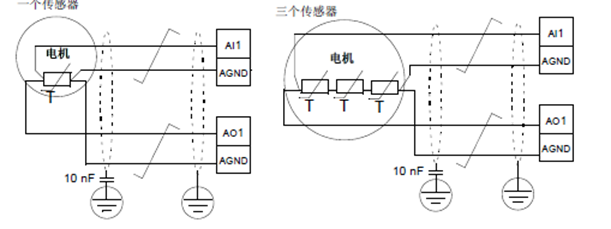 2.通過模擬量輸出端/輸入、電機內部溫度傳感器件,檢測電機溫度