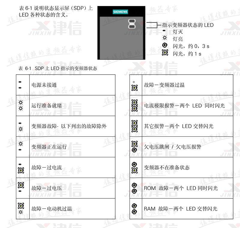 | A0503 欠壓限幅 | T- 供電電源太低 T- 供電電源電壓短時中斷 | 檢查電源電壓(P0210)應(yīng)保持在允許范圍內(nèi)。 |