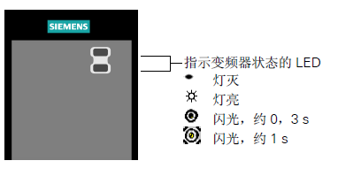 西門(mén)子變頻器在發(fā)生故障時(shí),變頻器跳閘,并在LED顯示屏上出現(xiàn)故障碼。如下圖: